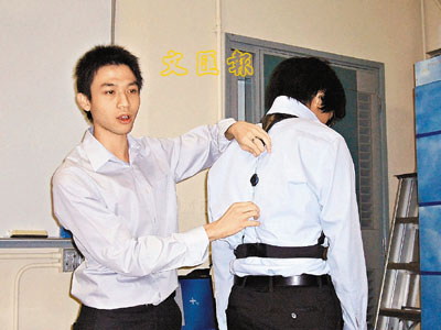 【本報訊】(記者 陳倩筠)不少人因錯誤姿態令腰酸背痛,長期更可導致駝背,嚴重者脊椎彎曲,影響健康。屯門專業教育學院一批機械工程學生,特別發明了一部頸項及脊椎矯正儀,當使用者姿勢不正,儀器會響,提醒用家保持正確姿態,儀器同時可接駁至電腦軟件,以記錄用家「犯錯」的次數,再作出數據分析,數據可經電郵傳送給脊醫作遙距監控分析。該儀器成本價只需100元,可謂物美價廉。