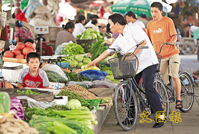 ■近期內地物價普漲,個別經營者趁機哄抬價格等現象已引起中央關注。圖為北京一菜市場。 法新社