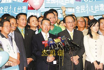 ■謝長廷(前中)15日宣布,蘇貞昌願意回應社會期待,擔任他的副手。 中央社