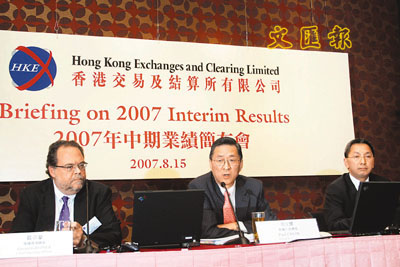 港交所(0388)昨日公布上半年業績,純利錄得23.3億元,較06年同期增長110%,超過市場最好的預期,每股盈利2.19元,派中期息1.79元。港交所行政總裁周文耀表示,該所於第二季出售香港中央證券登記所得的2億元收益,不排除於年底時向股東派送。他稱,過去該公司錄得的特殊收益,一般不會於中期派送,故該股東董事會要在年底,才會決定是否派特別股息。