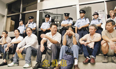 ■一班牛羊業界代表未獲周一嶽接見,一度在美利大廈門外靜坐抗議。本報記者聶曉輝 攝