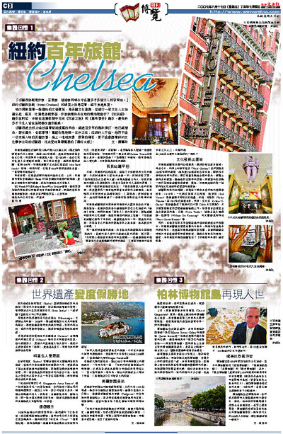 「切爾西旅館是作家、音樂家、藝術家和城市中各種多才多藝之人的孕育地。」紐約切爾西旅館(Hotel Chelsea)的網頁上如是寫著,絕不言過其實。