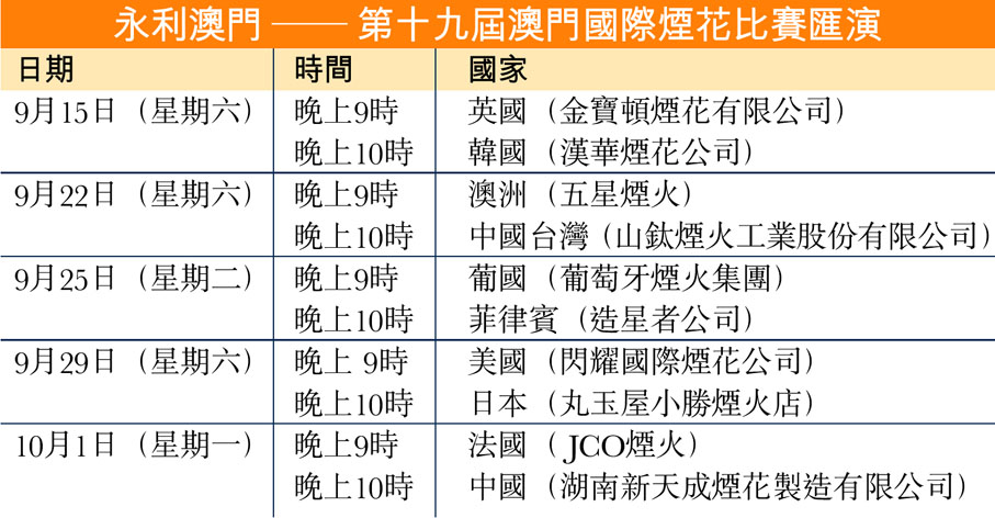 永利澳門 ── 第十九屆澳門國際煙花比賽匯演 (圖)