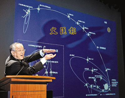 ■中國月球探測工程總指揮欒恩傑今年3月訪問理大時,介紹探月工程「嫦娥工程」。 資料圖片