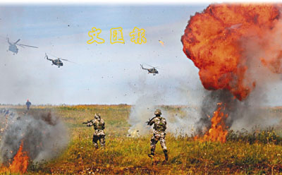 【本報北京新聞中心記者劉越山17日電】倍受矚目的「和平使命-2007」上合組織成員國武裝力量聯合反恐演習於今日下午在俄羅斯車里雅賓斯克切巴爾庫爾訓練場正式舉行。中國國家主席胡錦濤和哈、吉、俄、塔、烏6國元首下午到達「和平使命-2007」實兵演練現場進行實兵演練觀摩。精彩酷似「實戰」的演習,贏得6國元首陣陣掌聲。