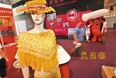 由避孕套製成的衣服、「超級女聲」男性用品、仿真女體模型、同志專用潤滑油、情趣內衣真人秀—如此吸引人們「性趣」的展會,即使30元的票價,開幕首日也難以抵擋上萬名觀眾的觀看熱情。