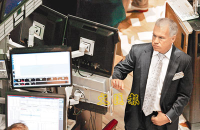 ■市況反覆,紐約交易所的交易員緊盯股價變化。 彭博