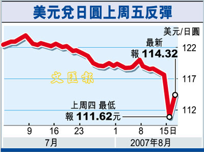 債市方面,美國10年國債孳息率下跌5基點至4.675厘。分析員指出,聯儲局下調貼現率,被視為未來可能減息的信號,反映次按問題可能影響到美國經濟增長,故交易員大舉買入國債,將10年國債價格推高,並令孳息率下跌。
