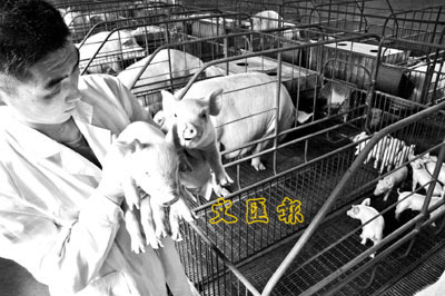 ■天津市擴大生豬貨源收購量、建立能繁母豬補貼制度等,豬肉價格開始穩中有降。圖為市津南區咸水沽鎮慶達養豬場。新華社
