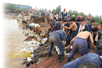 新泰礦災直擊報道 山東新泰「8.17」潰水事故在19日凌晨3時38分,經過搶險礦工和解放軍、武警官兵的晝夜封堵,終於將導致潰水礦難的汶河支流柴汶河潰口處封堵合龍。搶險救援工作重心已從堵住潰口轉向井口抽水和人員營救。但從17日14點30分發生事故至潰口合龍,30多個小時不斷有河水流入礦底,導致181名被困礦工生還希望渺茫。