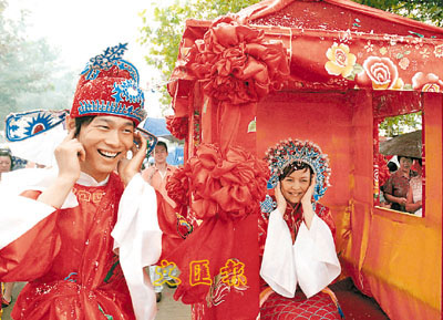 ■山東青年在七夕當天,用中西合璧式的婚禮迎娶俄羅斯新娘。 新華社
