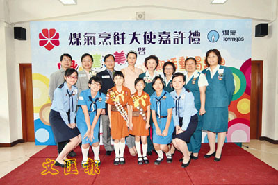 【本報訊】由香港女童軍總會與香港中華煤氣有限公司合辦的「女童軍煤氣烹飪大使計劃」自2005年成立至今,已有200多位女童軍參加並完成訓練。為嘉許各位烹飪大使,香港女童軍總會與煤氣公司日前假女童軍新德倫山莊舉行「女童軍煤氣烹飪大使嘉許禮」,當日並同時舉行「女童軍暑期活動身心健與美揭幕禮」。