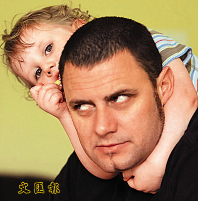 馬蒂斯2歲的弟弟緊抱父親,是否在思索:「爸爸你為何一臉煩躁?」 美聯社