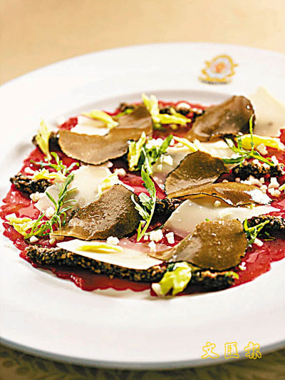薄片生牛肉沙律伴黑松露菌 (圖)