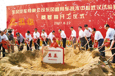 總投資近16億元人民幣的東風商用車技術中心武漢試驗基地昨在武漢經濟技術開發區破土動工。該基地佔地面積達20萬平方米。建成後,基地將擁有先進的發動機試驗室、電子電氣實驗室、材料試驗室、整車消聲室、轉鼓試驗室、整車道路模擬試驗室、系統匹配和零部件實驗室、環境試驗室以及試驗綜合樓、汽車博物館、試車跑道等先進設施。 中新社