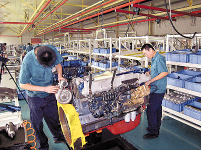 ■中國重汽已基本完成赴港上市準備, 圖為其生產車間一角。本報記者楊奕霞 攝