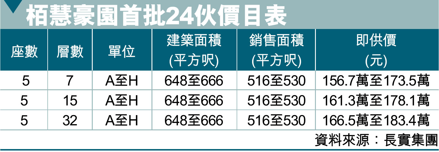 柏慧豪園首批24伙價目表