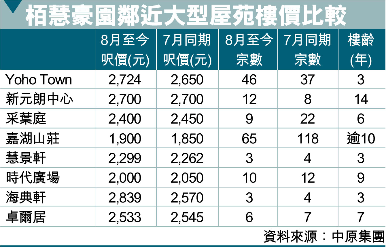 柏慧豪園鄰近大型屋苑樓價比較 (圖)