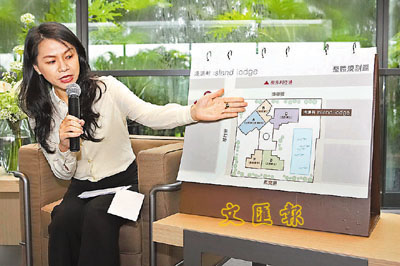 ■太古地產高級營業經理馬淑貞介紹港濤軒單位平面圖。本報記者林德芬 攝