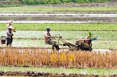 ■受全球暖化日益加劇,以及耕地日漸減少等因素的影響,中國糧食將面臨減產威脅。圖為廣西田東縣農民在田間耕種。資料圖片