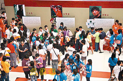 ■中國十大傑出青年、安踏(中國)有限公司總裁丁志忠,中國著名郵票設計家萬維生,奧運冠軍王軍霞等中國當代文化、體育名人和傑出青年精英向台灣青年進行現場簽贈及交流互動現場。