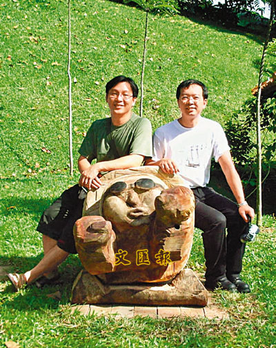■戴尚誠(右)及周順強作為本港都市雕塑的有心人,早前更參加了新加坡木雕創作營交流取經。
