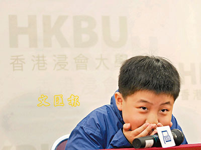 ■掩嘴詩鈞稚氣十足,回答問題時顯得怯場。 本報記者劉國權 攝