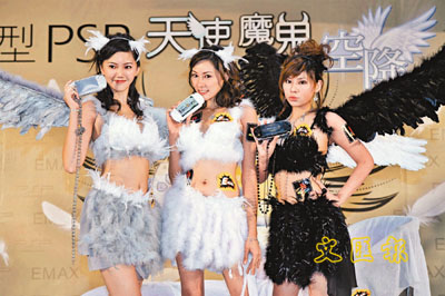 【本報訊】(記者 梁靜儀)陸詩韻與唐貝詩和李曼筠(Maggie)昨日以性感天使裝束出席遊戲機活動,詩韻直言弟弟得悉有Maggie出席活動,竟比她更興奮。在去年的動漫節中因打扮性感而成功出位的Maggie,昨日卻收起性感。她解釋因為衣不稱身,上圍尺碼較窄,為免走光便臨時加上一條白色羽毛。現正積極減肥的Maggie,表示已減十多磅,但上圍卻沒有變動,全是遺傳所致。寇鴻萍女兒唐貝詩打扮向來大膽,而昨日她也直認不諱真空上陣。才十多歲便這樣性感出席活動,唐貝詩表示工作是母親為她接的,日後亦會多接這類模特兒工作。