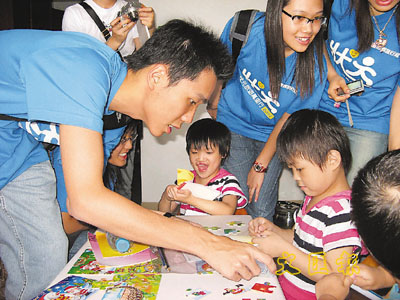 ■學生探訪山東的孤兒,並送上新文具,鼓勵他們努力學習。本報記者歐陽杏櫻 攝