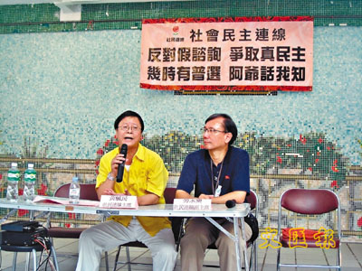 ■社民連聲稱,若協調條件談不合攏,不排除最後有多張名單參選。該政團並在舉行政制綠皮書論壇上,狠批其他反對派。本報記者郭曉樂 攝