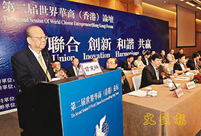 ■曾憲梓在接受世界傑出華人勳章後致辭。本報記者李志樑 攝