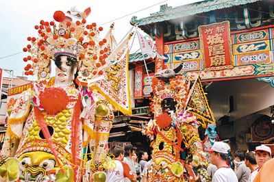 ■農曆七月十五日中元節,台灣新竹都城隍出巡遶境賑孤。 (中央社)