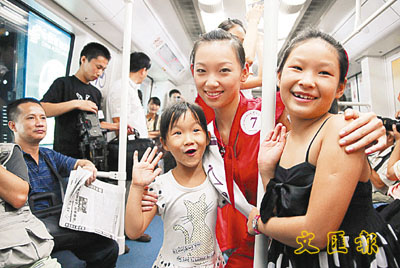 ■參選佳麗將美與時尚送進了地鐵車廂。