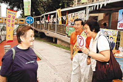■譚太(右一)樂做譚耀宗競選「背後的女人」。資料圖片