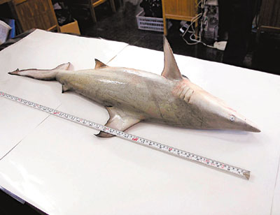 ■海下灣海岸公園昨晨發現死去幼鯊,經漁護署鑑定後證實為黑斑鯊。漁護署提供圖片