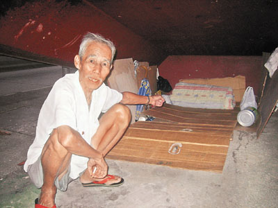 ■李伯因遺失身份證致無法申請綜援,8個多月來被迫在天橋底露宿;他盼望盡快獲發身份證,早日入住「安樂窩」本報記者譚靜雯 攝