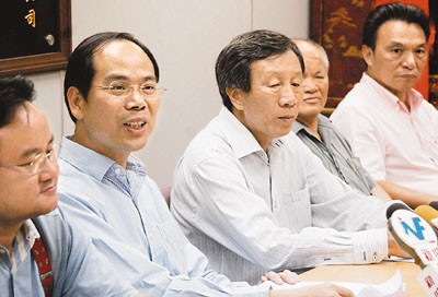 ■扎鐵商會會長曾登發(左二),首度現身召開記者會,回應近日工潮。本報記者曾慶威 攝