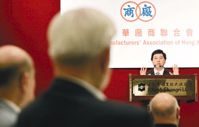 中華廠商會會長洪克協致辭時說,普選行政長官及立法會屬「新生事物」,應給予足夠時間讓社會各階人士討論和尋求共識,而選舉辦法應根據香港實際情況、循序漸進及由各界均衡參與的原則而規定,逐步由現行選舉辦法過渡至由普選而產生的模式,以維護本港社會、經濟、政治整體持續發展及繁榮穩定。