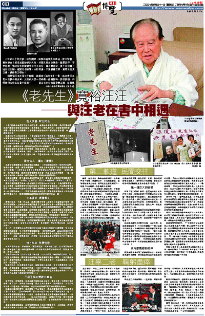 因聞悼汪老文章七十餘篇,結集成《老先生》一書,遂央得汪老長女汪靜小姐首肯,允我就其書一抒感懷。接連數晚,孤燈夜讀,彷彿竟與老先生在書中相遇。