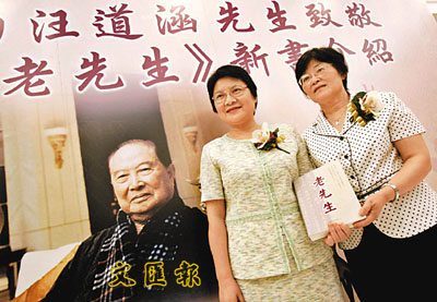 ■汪道涵女兒汪靜(左)和汪凝(右)出席《老先生》新書發佈會。 梁祖彝 攝