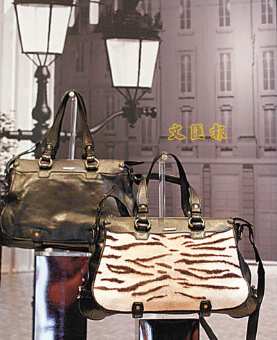 ■可側揹、斜揹兩用的皮包,有全黑皮及老虎紋多個款式供女士選擇。$12,000(後)$17,000(前)