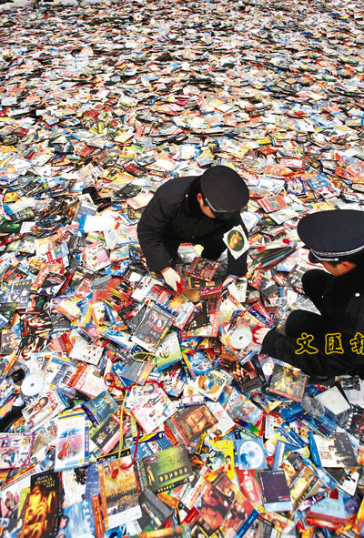 ■美國訴中國知識產權案在世貿進入討論,圖為中國打擊翻版行動。 資料圖片