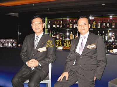 ■恆地營業部總經理謝偉銓(左)表示,翔龍灣首批重推單位,售價介乎333.5萬元至754.2萬元。旁為恆地林達民。本報記者林淑儀 攝