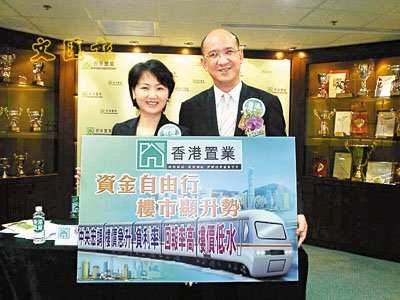 ■港置胡日發(右)及廖玉娟稱,在中央宏調措施及保值思想下,內地客來港置業會成為趨勢。本報記者 梁悅琴 攝