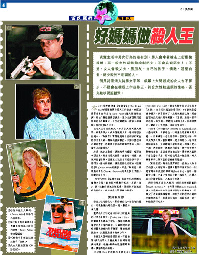 倒是荷里活支持男女平等,銀幕上大開殺戒的女人也不算少,不過會在橋段上作些修正,符合女性較溫順的性格,否則難以說服觀眾。