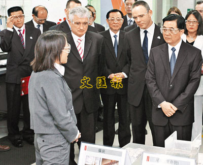 ■4日,在珀斯科技園聯合研究中心,胡錦濤先後參觀了地質力學實驗室和選礦實驗室。路透社