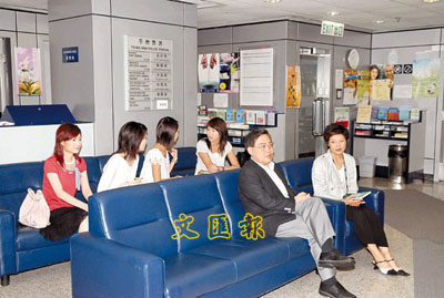 ■有線電視4名女主播疑遭性騷擾,昨在有線電視執行董事趙應春及主播組主任張宏艷(右一)的陪同下,到警署提供資料。
