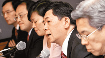 ■容永祺(右二)稱,專業及資深行政人員協會建議,先在2017年普選特首。本報記者梁祖彝 攝