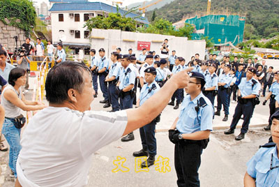 ■一批扎鐵工人在銅鑼灣山路的地盤與警員爆發衝突。