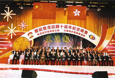 本會於二OO七年七月二十六日假香港會展新翼大會堂舉行慶祝香港回歸十周年暨本會成立十八周年紀念晚會。全國政協副主席董建華,行政長官曾蔭權,中聯辦主任高祀仁和外交部駐港特派員呂新華主禮。全國政協秘書長鄭萬通,中華海外聯誼會副會長、中央統戰部副部長黃躍金,遠道由北京來港出席。本會主席兼中華海外聯誼會副會長李東海及中華海外聯誼會副會長霍震寰陪同各主禮嘉賓主持亮燈儀式。行政會議成員廖長城,勞工及福利局局長張建宗,財經事務及庫務局局長陳家強,基本法委員會副主任梁愛詩,中央政策組首席顧問劉兆佳,民政事務總署署長陳甘美華,消防處處長郭晶強,禮賓處處長阮文海,中聯辦副主任黎桂康,特邀顧問陳鳳英,秘書長趙廣廷,以及各部部長王永樂、邢魁山、朱曉平、李正慈、林武、郭鐵生,中山市副市長韓澤生,公益金籌募委員會主席鄭海泉及三十多個國家駐港總領事和各界友好嘉賓一千四百多人出席盛會,會展冠蓋雲集,衣香鬢影,盛況空前。